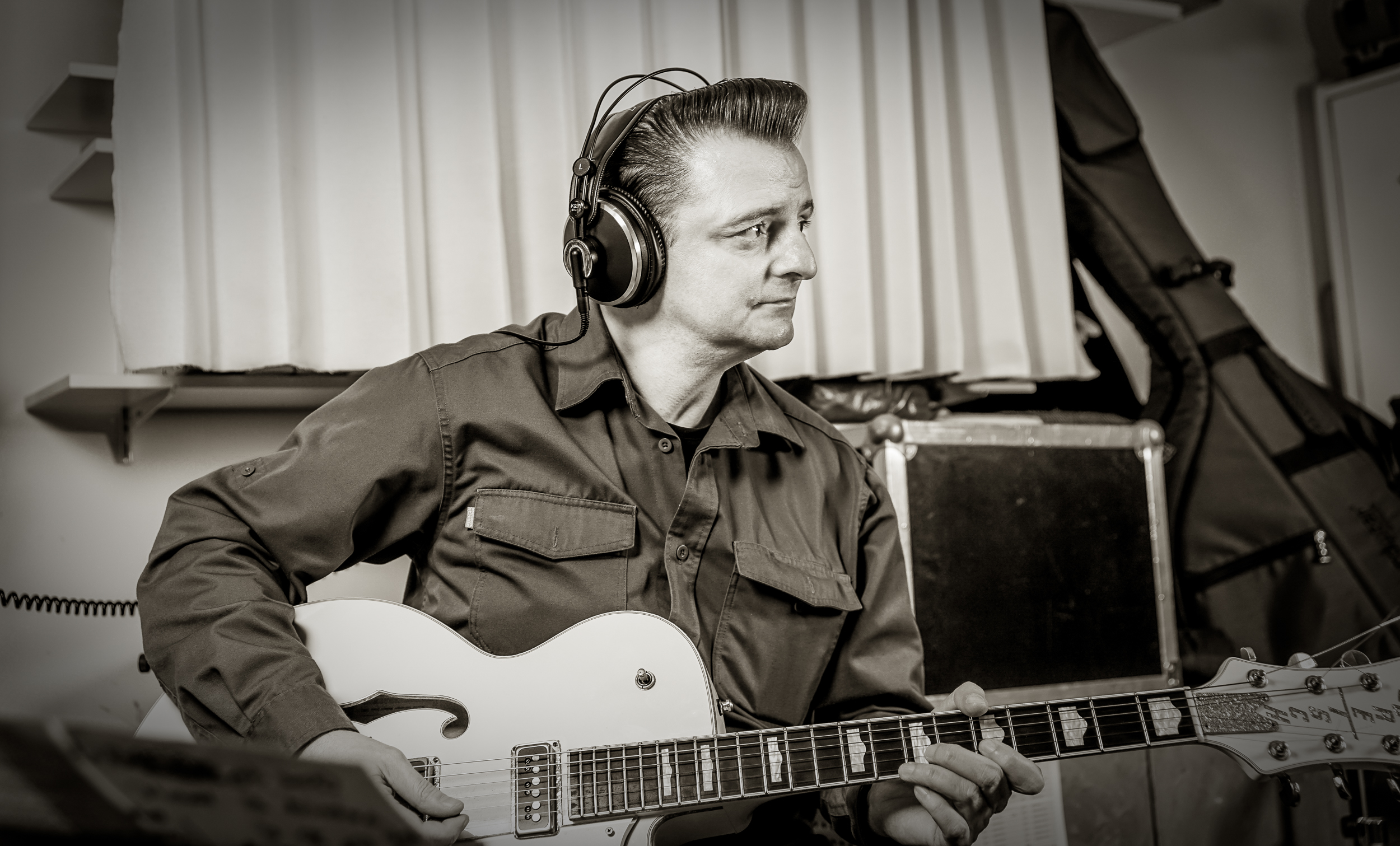 Seit ich mit meiner ersten Band „Dirty Doggies“ im Jahre 1986 startete, Musik zu machen, habe ich durchgehend bis heute in den verschiedensten Formationen gespielt. Eins hatten alle gemeinsam, es handelte sich um den Stil und Sound längst vergangener Dekaden. Jazz, Blues, Swing, Folk, Neo-Rockabilly … vieles war dabei, aber meine grosse Liebe zum klassischen Rock‘n‘Roll der 50er Jahre, zum Doo Wop und zum Jive hat meist den Sound der Bands geprägt, in denen ich spielte.