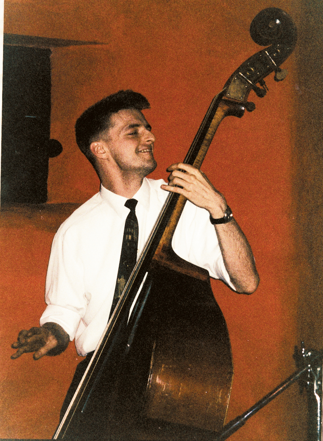 Angefangen als Rhythmusgitarrist, begann ich Ende der 1980er Jahre Kontrabass zu üben, da mich dieses Instrument immer faszinierte und ich ausserdem auch nie die Disziplin und Motivation hatte, an mir zu arbeiten, um mich auf der Solo-Gitarre fit zu machen. Neben dem Gesang sah ich am Bass meine musikalische Zukunft. Allerdings war es immer leichter für ein neues Projekt eher einen Bassisten, als einen Sologitarristen zu finden. So übernahm ich in einigen Formationen die Sologitarre, und kombinierte die paar Riffs, die mir mal gezeigt wurden und die ich auch unter Lampenfieber einigermaßen fehlerfrei spielen konnte – nie virtuos, aber immer ausreichend, dass es nach Musik klang und das Publikum dazu feiern und tanzen konnte.